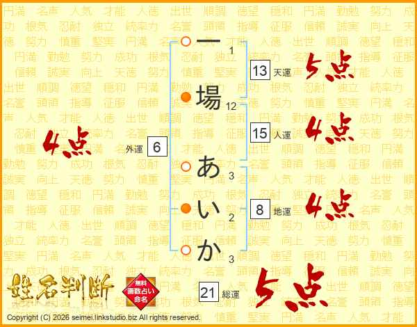 一場あいかさんの天運は13画の5点!