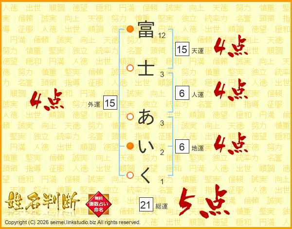 富(12画)士(3画) あ(3画)い(2画)く(1画)