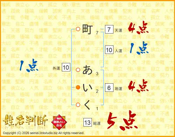 町あいくさんの総運は13画の5点!