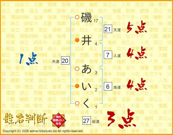 磯井あいくさんの総運は27画の3点!