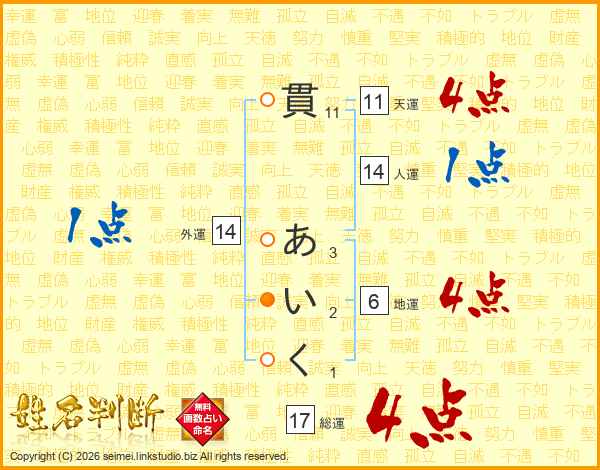 貫あいくさんの総運は17画の4点!