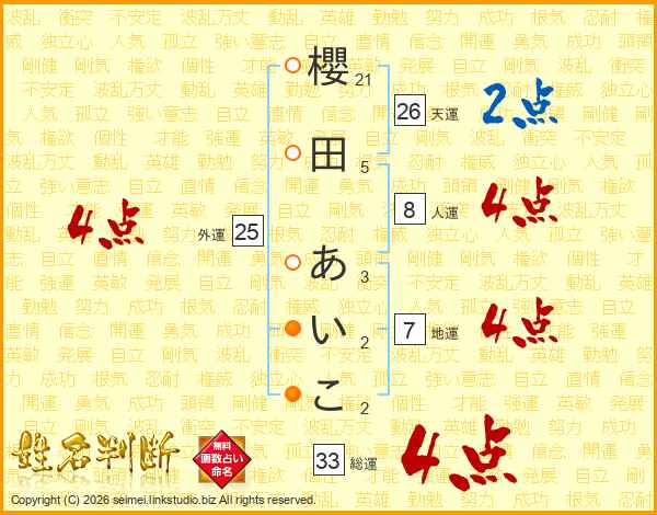 櫻田あいこさんの総運は33画の4点!