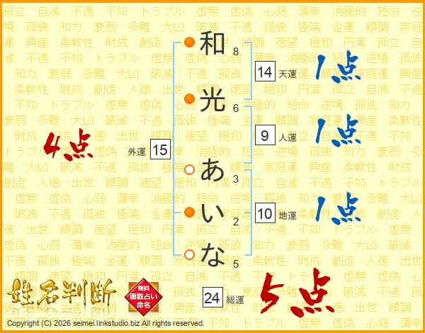 和(8画)光(6画) あ(3画)い(2画)な(5画)