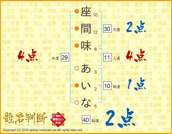 座間味あいなさんの総運は40画の2点!
