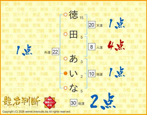 徳田あいなさんの総運は30画の2点!
