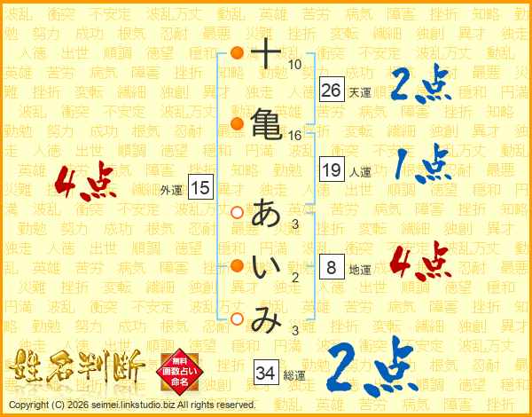 十(10画)亀(16画) あ(3画)い(2画)み(3画)