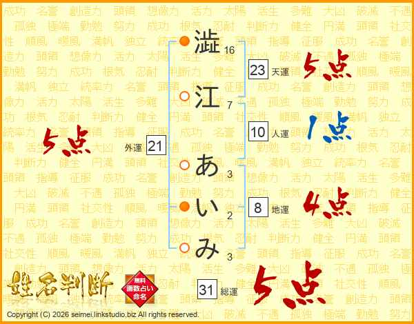 澁江あいみさんの総運は31画の5点!