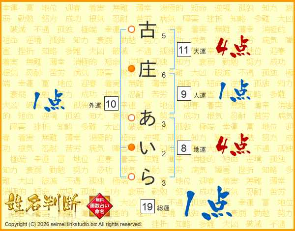 古庄あいらさんの総運は19画の1点!