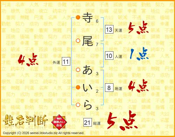 寺尾あいらさんの天運は13画の5点!