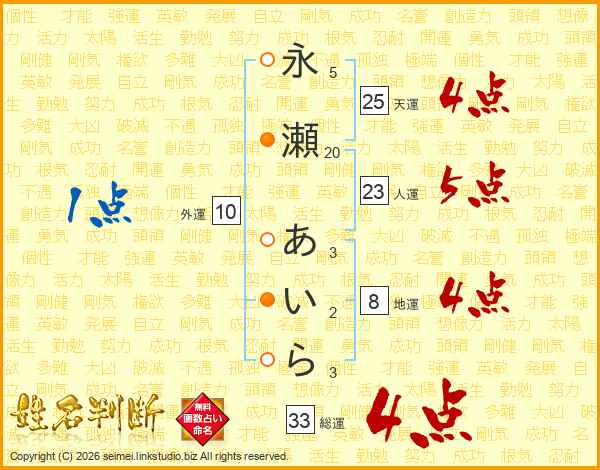 永瀬あいらさんの総運は33画の4点!