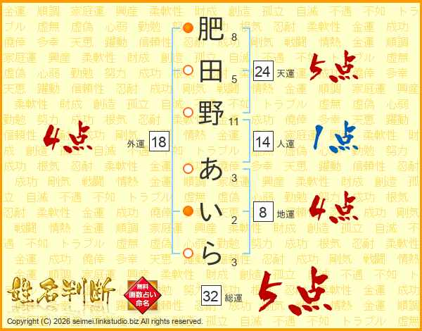 肥(8画)田(5画)野(11画) あ(3画)い(2画)ら(3画)