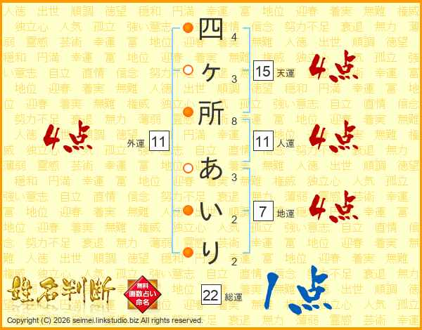 四ヶ所あいりさんの総運は22画の1点!
