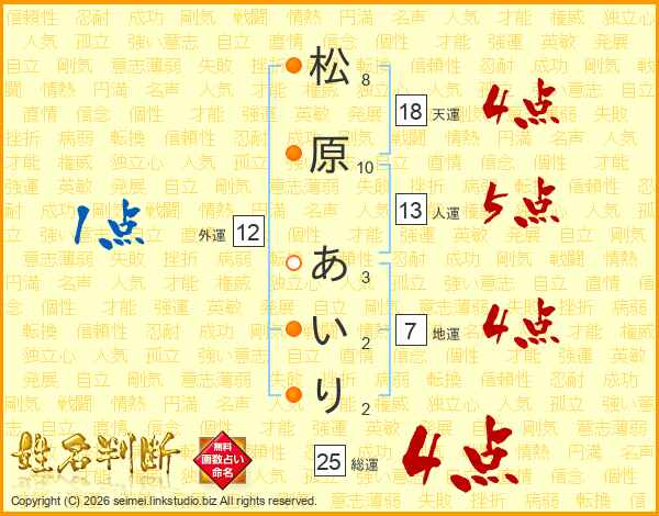 松原あいりさんの総運は25画の4点!