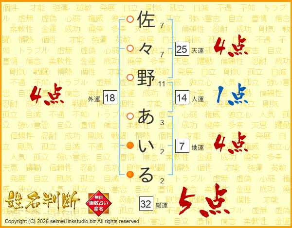 佐々野あいるさんの総運は32画の5点!