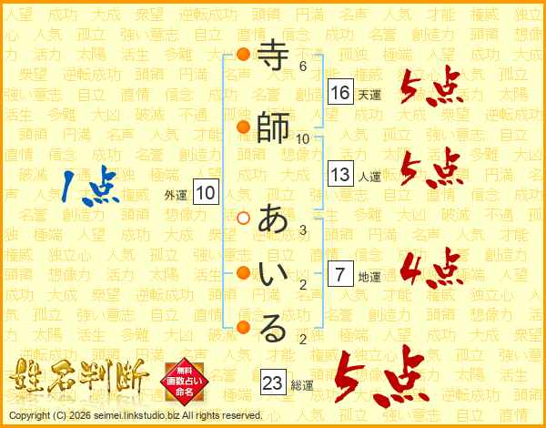 寺(6画)師(10画) あ(3画)い(2画)る(2画)