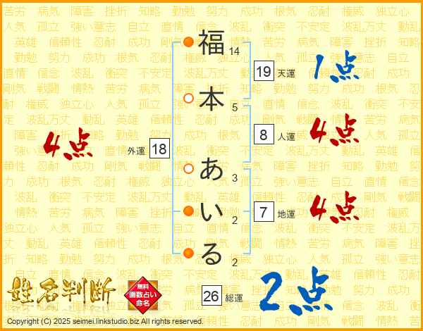 福本あいるさんの総運は26画の2点!