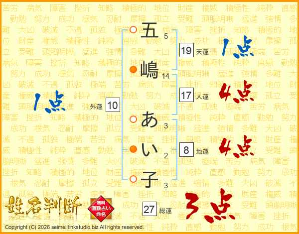 五嶋あい子さんの総運は27画の3点!