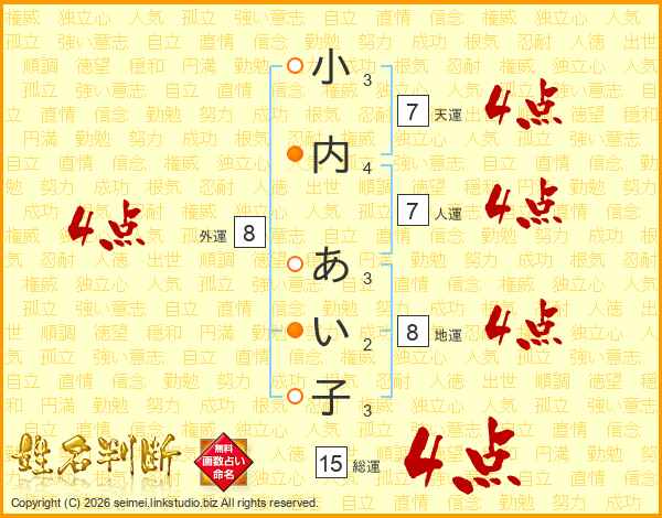 小(3画)内(4画) あ(3画)い(2画)子(3画)