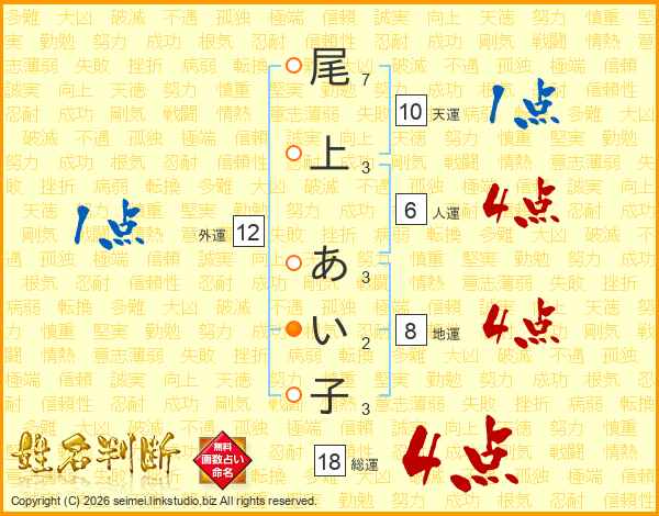 尾上あい子さんの外運は12画の1点!