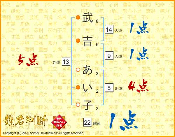 武吉あい子さんの総運は22画の1点!