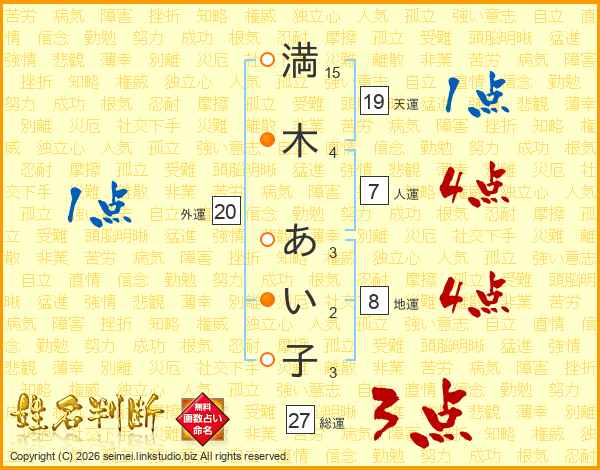 満木あい子さんの総運は27画の3点!