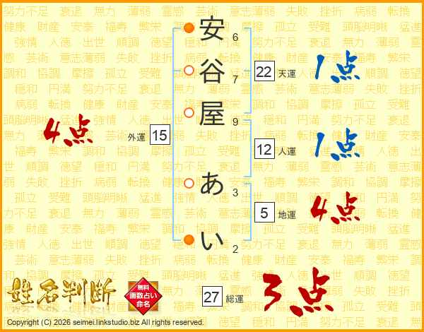 安谷屋あいさんの総運は27画の3点!
