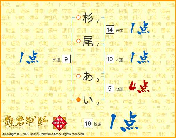 杉尾あいさんの総運は19画の1点!