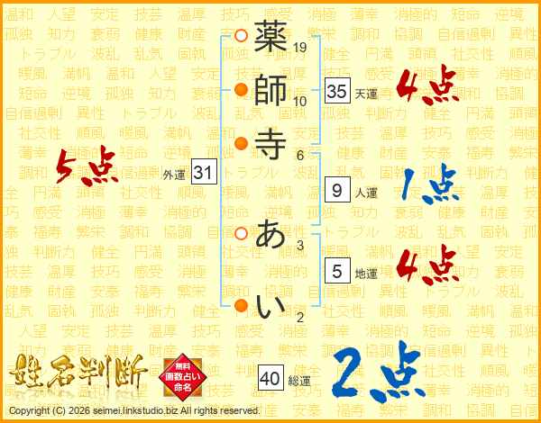 薬師寺あいさんの総運は40画の2点!