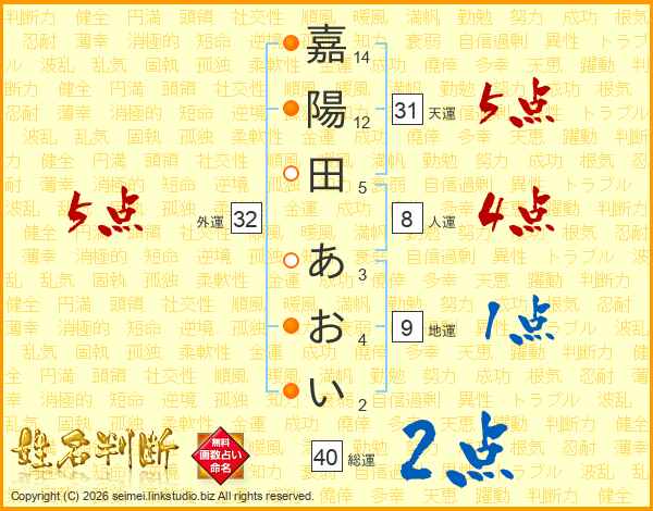 嘉陽田あおいさんの外運は32画の5点!