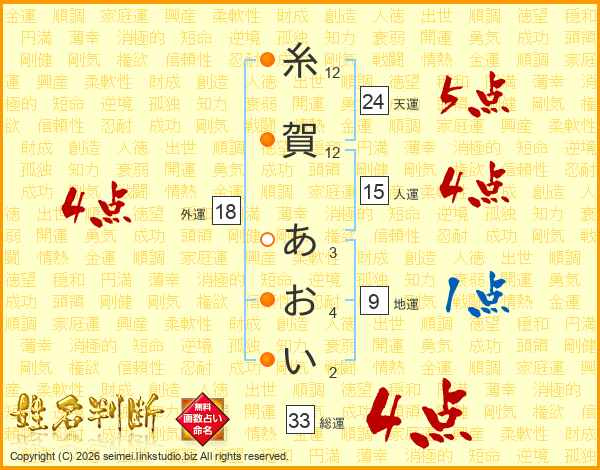 糸(12画)賀(12画) あ(3画)お(4画)い(2画)