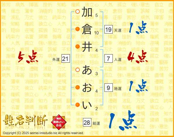 加倉井あおいさんの外運は21画の5点!