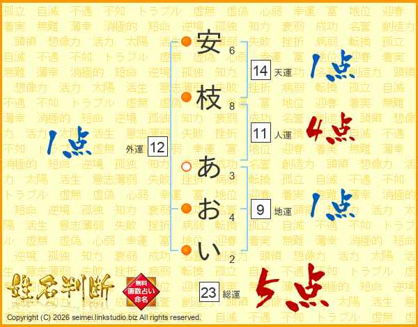 安枝あおいさんの総運は23画の5点!