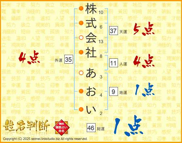株(10画)式(6画)会(13画)社(8画) あ(3画)お(4画)い(2画)