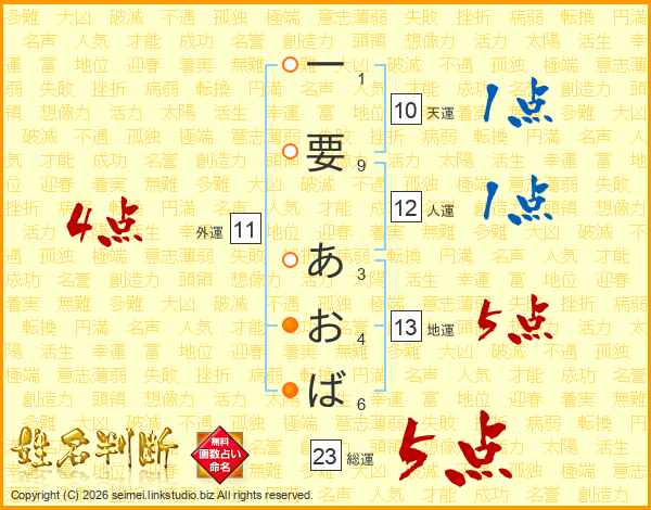 一要あおばさんの総運は23画の5点!