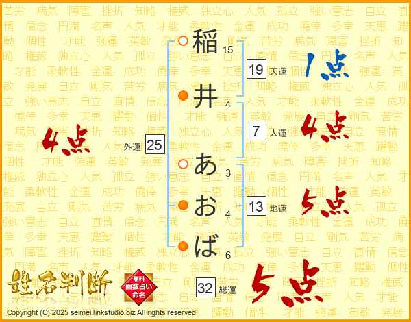 稲井あおばさんの総運は32画の5点!