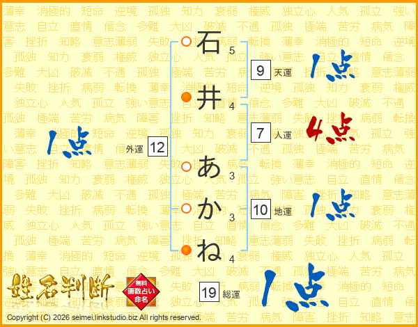 石井あかねさんの人運は7画の4点!