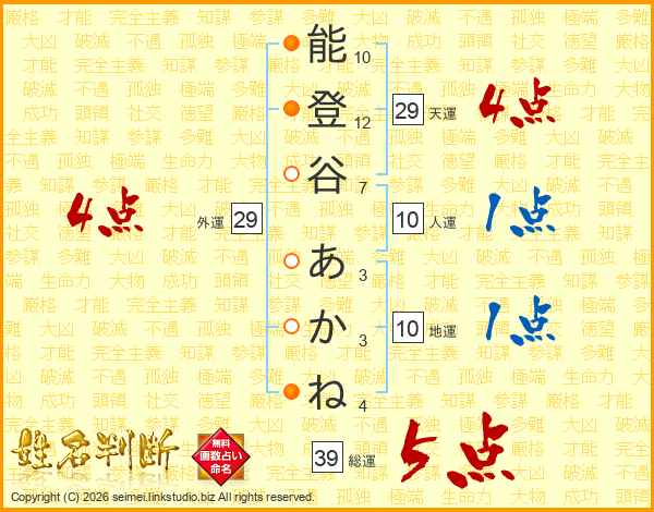 能(10画)登(12画)谷(7画) あ(3画)か(3画)ね(4画)