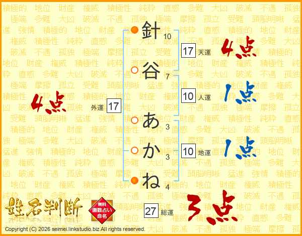 針谷あかねさんの外運は17画の4点!