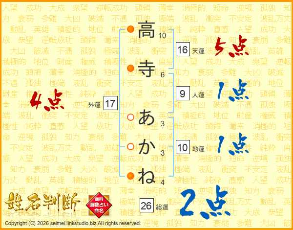 高(10画)寺(6画) あ(3画)か(3画)ね(4画)