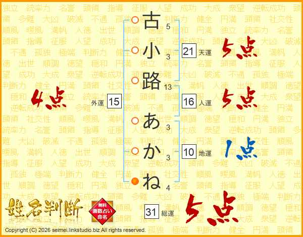 古小路あかねさんの総運は31画の5点!