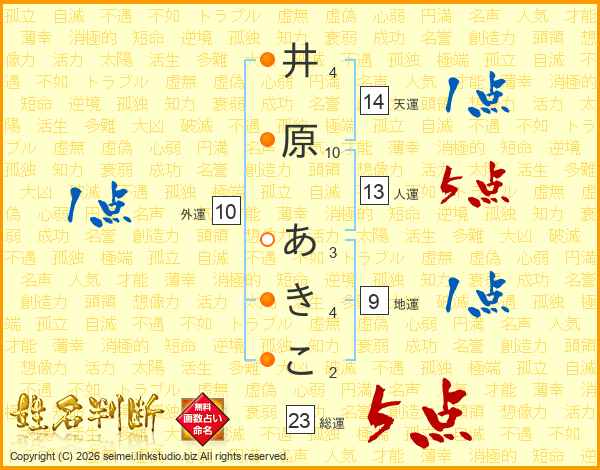 井(4画)原(10画) あ(3画)き(4画)こ(2画)