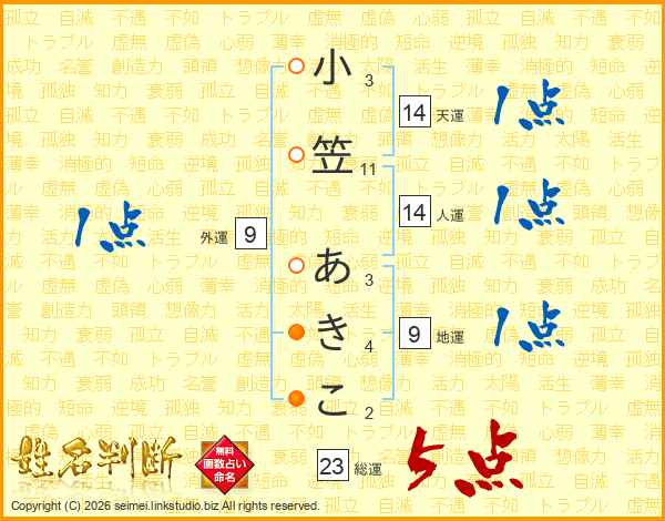 小笠あきこさんの総運は23画の5点!
