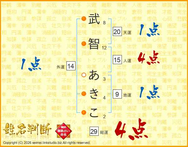 武智あきこさんの総運は29画の4点!
