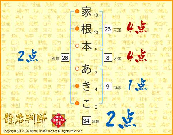 家根本あきこさんの総運は34画の2点!