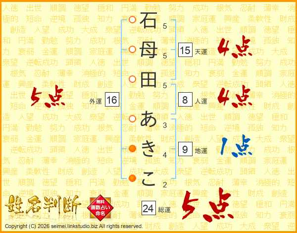 石母田あきこさんの総運は24画の5点!