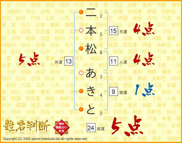 二本松あきとさんの総運は24画の5点!