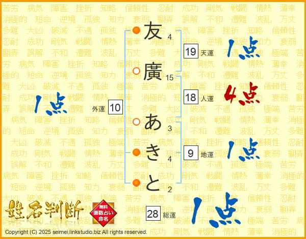 友(4画)廣(15画) あ(3画)き(4画)と(2画)