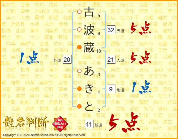 古波蔵あきとさんの総運は41画の5点!