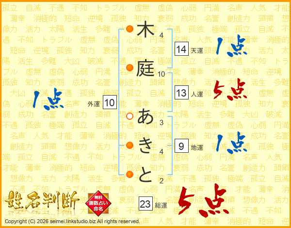木(4画)庭(10画) あ(3画)き(4画)と(2画)