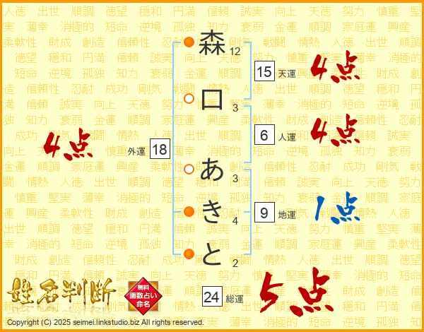 森口あきとさんの総運は24画の5点!
